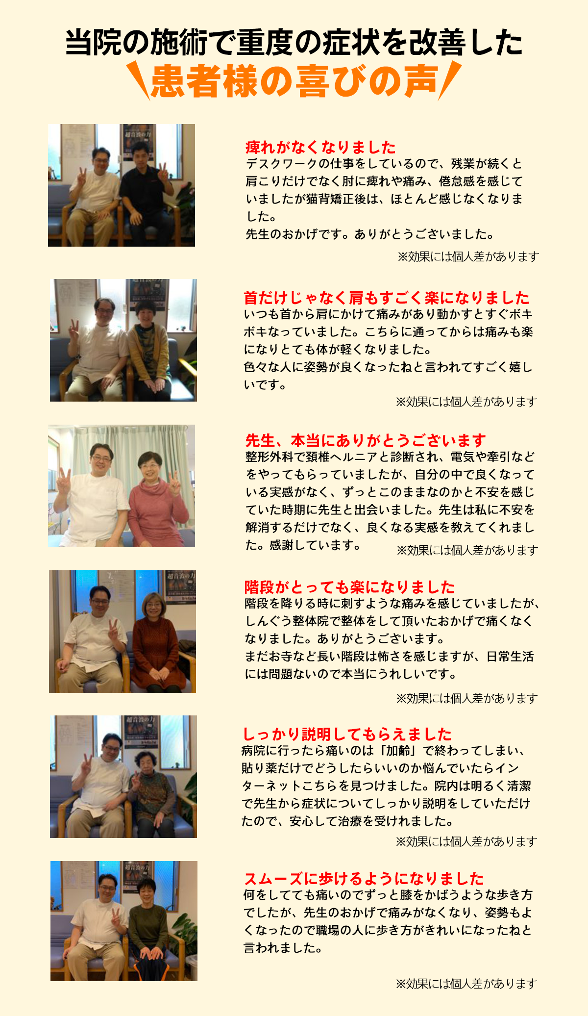 - 遠方から来院されている方も多く、患者様からお喜びの声を多数頂いているから
