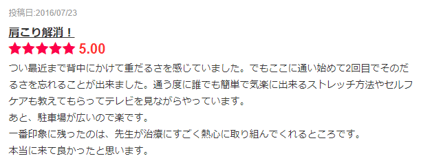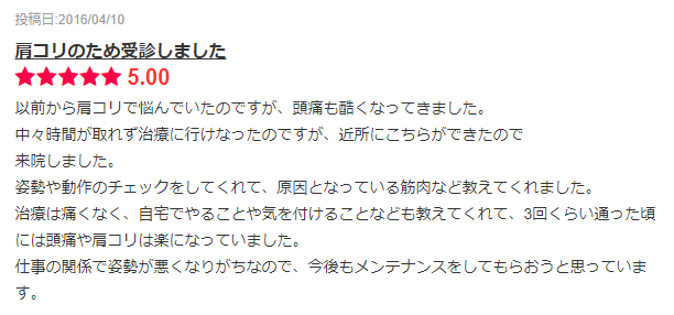 3回くらい通った頃には頭痛や肩コリは楽になっていました!